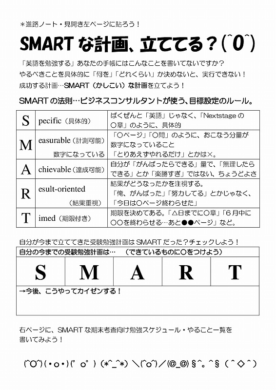 これは、私が受験生クラスを担任していたとき、生徒の指導に使っていた「進路ノート」のためのハンドアウトです。