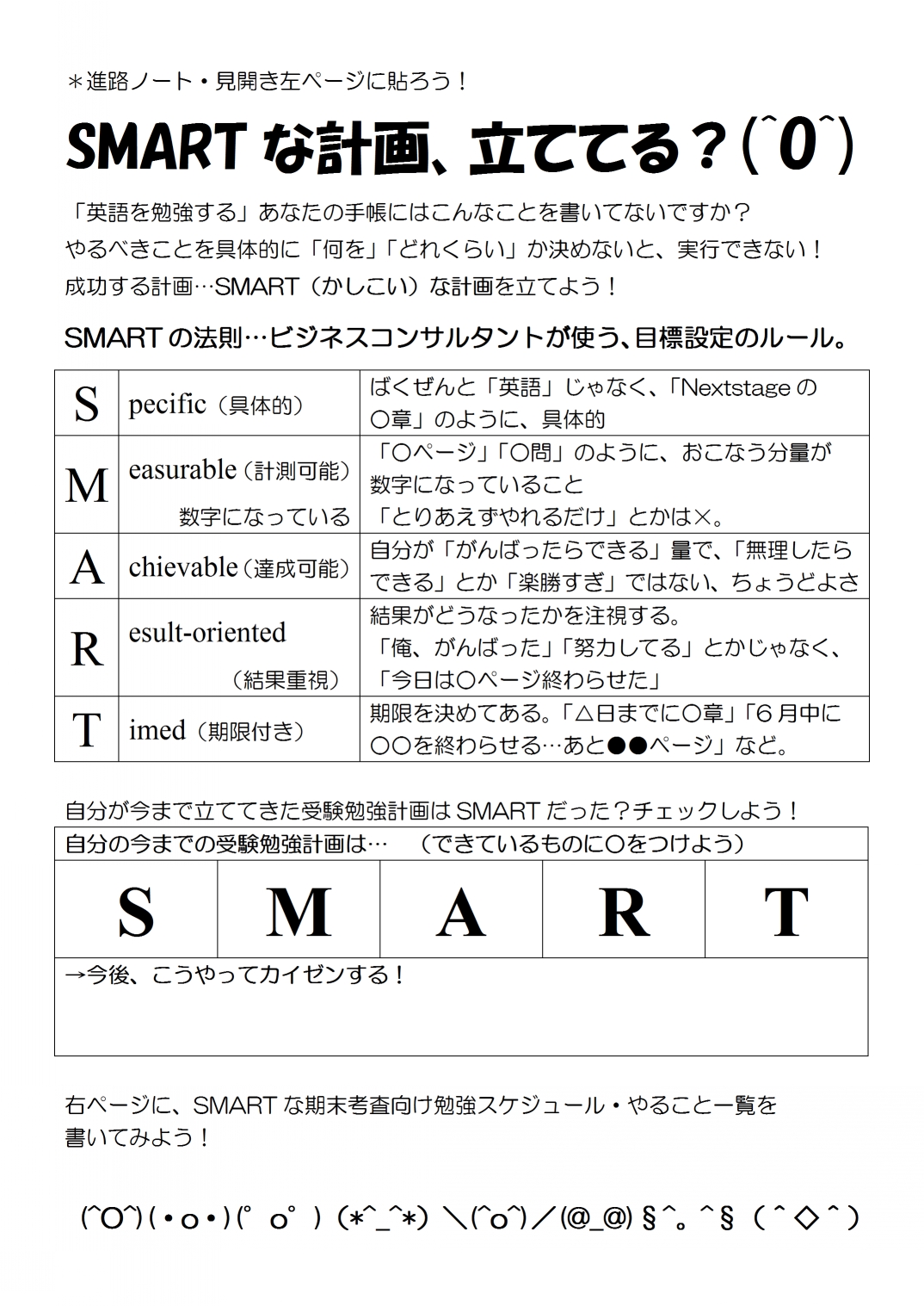 「SMARTな計画を立ててる?」というプリントです(*^◯^)