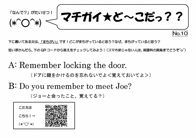 英語ポスター「まちがい★どーこだっ?」No.10(to不定詞と動名詞を使う動詞)