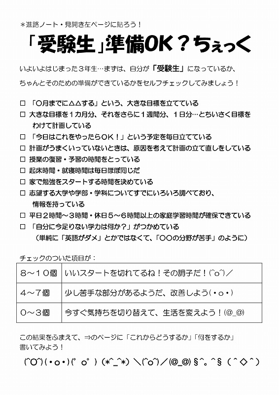 これは、私が受験生クラスを担任していたとき、生徒の指導に使っていた「進路ノート」のためのハンドアウトです。