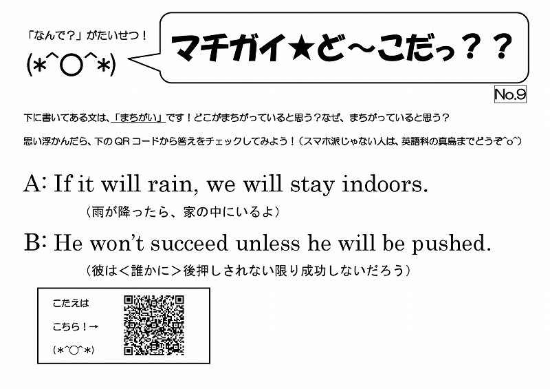 英語ポスター「まちがい★どーこだっ?」No.9(時と条件の副詞節)